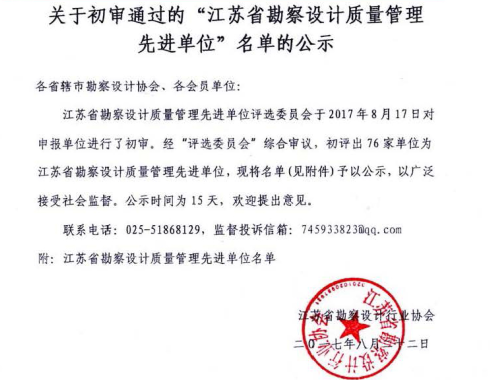 江蘇省工程勘察設計行業(yè)誠信單位誠信單位”的企業(yè)2015-08-21